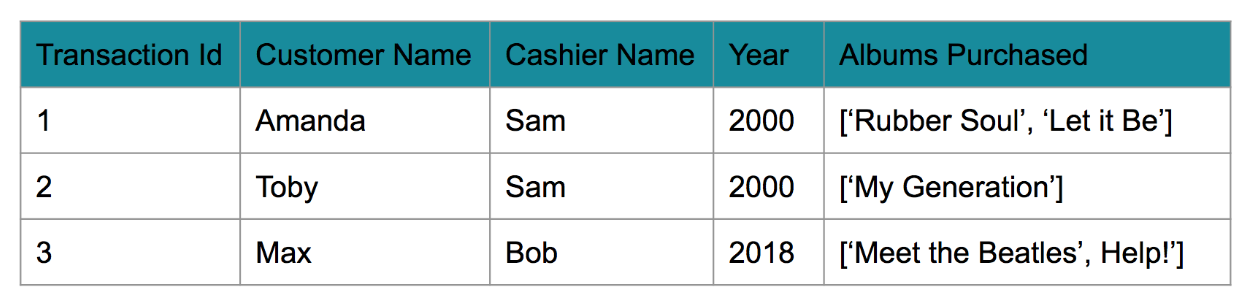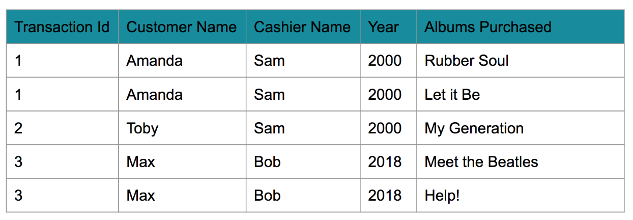 원자 값: 각 셀에는 고유한 단일 값이 포함된다.